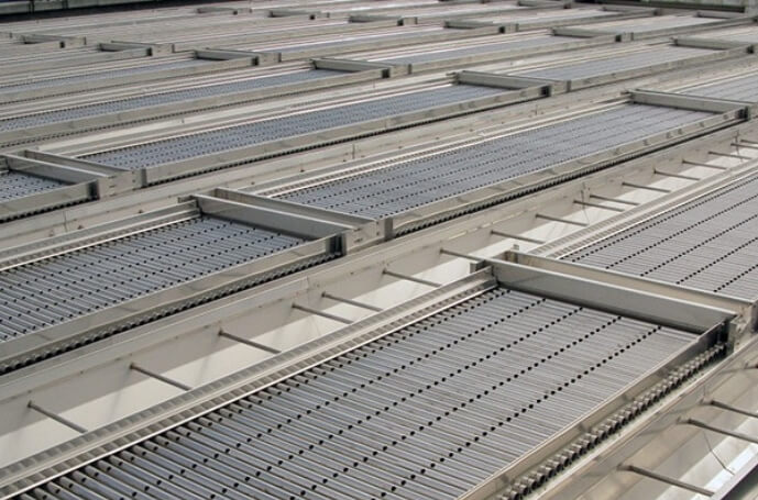 The flow rate is adjusted by each plate settler and the entire water basin to provide more flow control and the most even distribution.